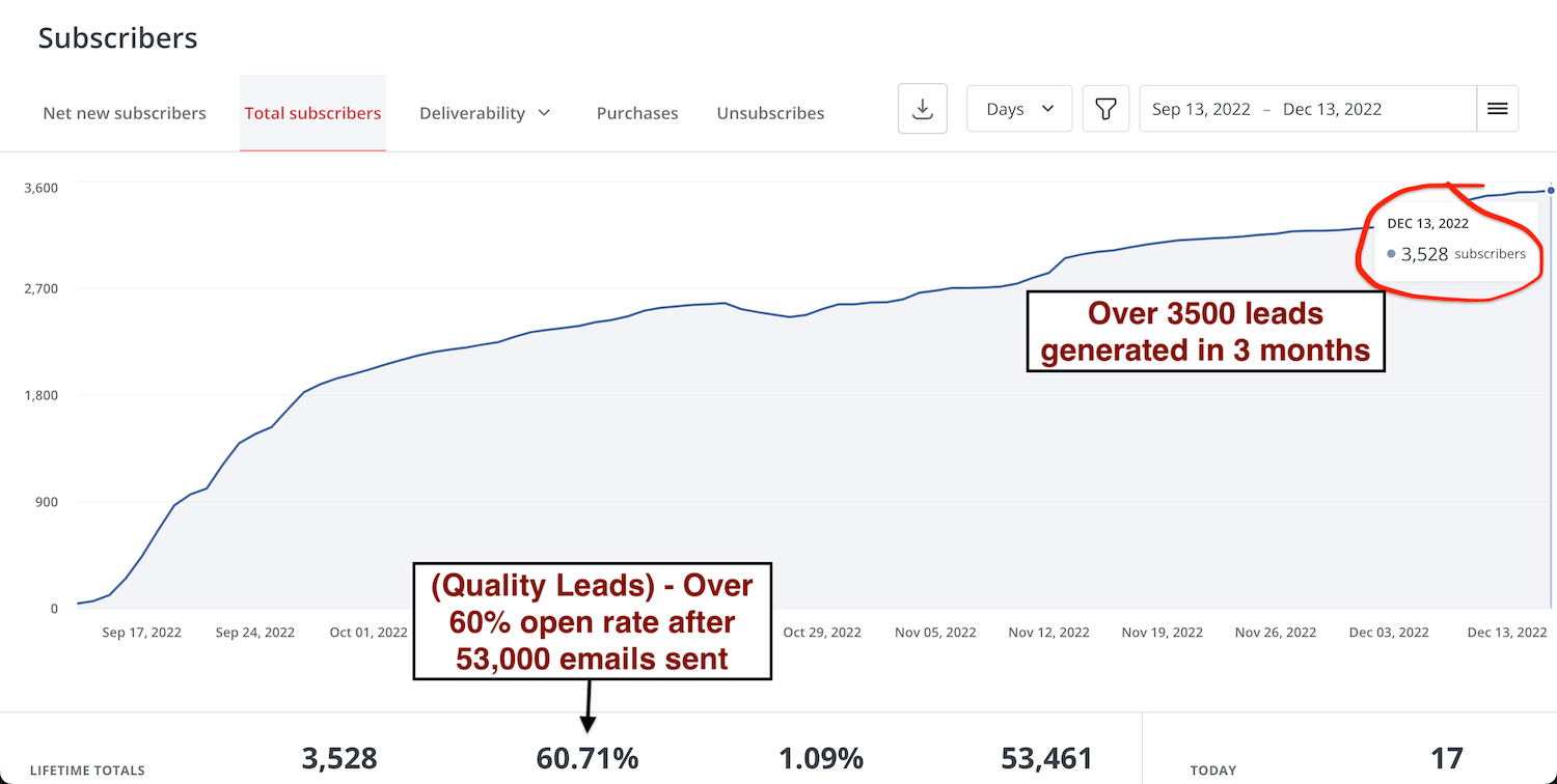 When you're generating this many leads, you have the luxury of not needing to trade your time for money. I personally DON'T do any 1-to-1 coaching or done-for-you services because I have enough leads to sustain my business using digital products that can be delivered with little to no time investment from me.